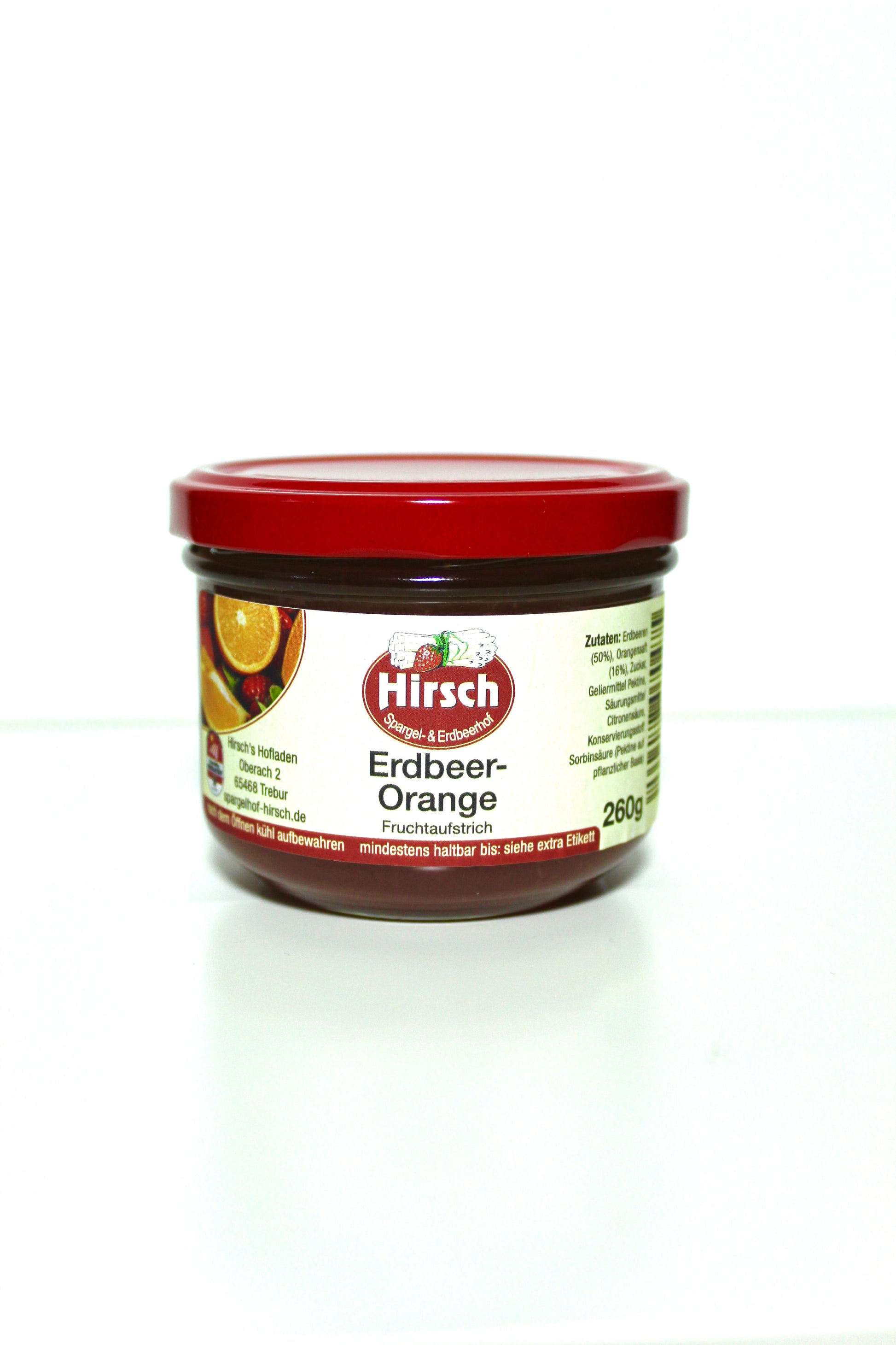 Zutaten: 50% Erdbeeren, 16% Orangensaft, Zucker, Geliermittel (Pektine auf pflanzlicher Basis), Citronensäure, Sorbinsäure